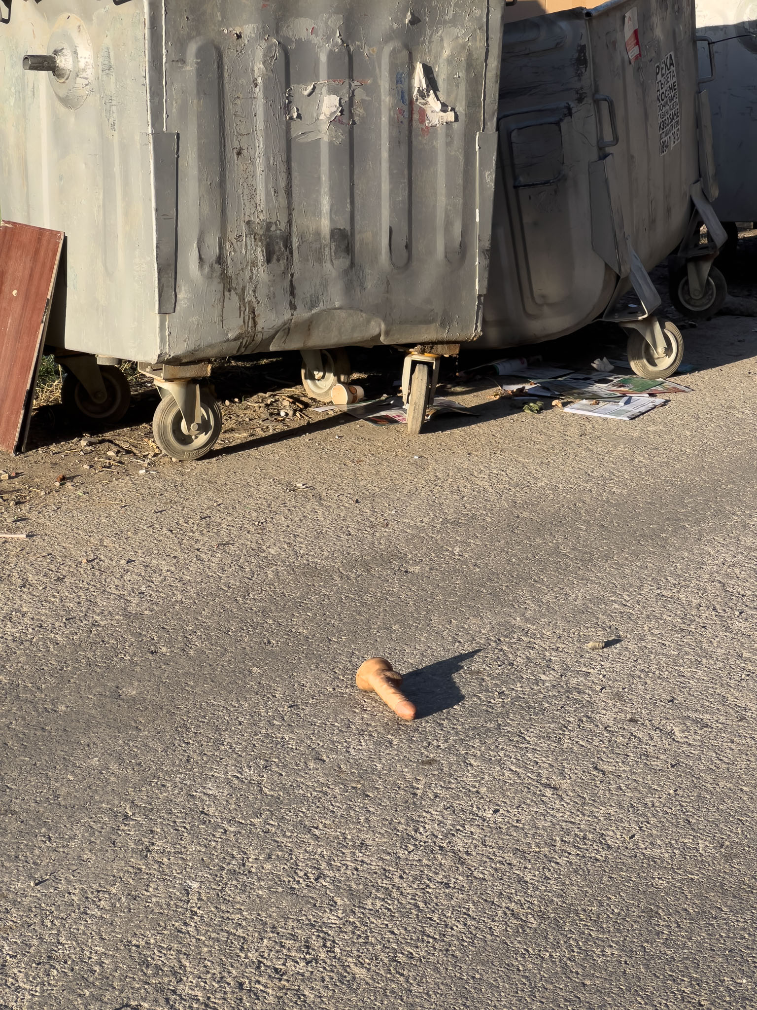That sticker is a nice change of scenery for this street. Over the years, this exact spot—next to a playground that doubles as a toy dump—has seen a discarded wig and a dildo.